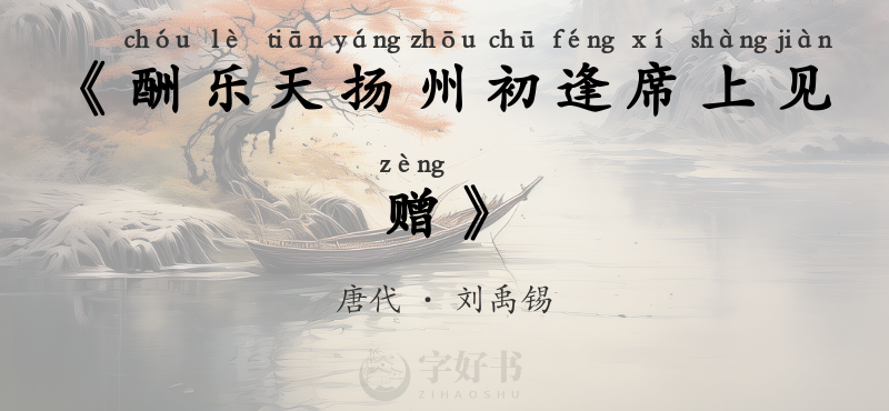 巴山楚水凄凉地,二十三年弃置身。巴山楚水:刘禹锡被贬后,迁徙于朗州、连州、夔州、和州等边远地区,这里用“巴山楚水”泛指这些地方。二十三年:从唐顺宗永贞元年(805年)刘禹锡被贬为连州刺史,至宝历二年(826)冬应召,约22年。因贬地离京遥远,实际上到第二年才能回到京城,所以说23年。弃置身:指遭受贬谪的诗人自己。置:放置。弃置:贬谪(zhé)。 怀旧空吟闻笛赋(fù),到乡翻似烂柯(kē)人。怀旧:怀念故友。吟:吟唱。闻笛赋:指西晋向秀的《思旧赋》。刘禹锡借用这个典故怀念已死去的王叔文、柳宗元等人。到:到达。翻似:倒好像。翻:副词,反而。烂柯人:指晋人王质。刘禹锡也借这个故事表达世事沧桑,人事全非,暮年返乡恍如隔世的心情。 沉舟侧畔(pàn)千帆过,病树前头万木春。沉舟:这是诗人以沉舟、病树自比。侧畔:旁边。 今日听君歌一曲,暂凭杯酒长(zhǎng)精神。 歌一曲:指白居易的《醉赠刘二十八使君》。长精神:振作精神。长:增长,振作。